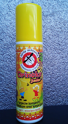 W ubiegły weekend byliśmy na działce, a w przyszły wybieramy się pod namiot nad jezioro Rożnowskie. Postanowiłam więc, że zakupie jakiś preparat "antykomarowy". W tym celu udałam się do apteki. Wydawało mi się, że produkty tam sprzedawane powinny być dobrej jakości. Zdecydowałam się spray ochronny z firmy Orinoko przeznaczony dla dzieci. Ja mam często alergie skórne, dla tego kupiłam produkt dla dzieci- takie kosmetyki (tak mi się wydaje) są poddawane bardziej rygorystycznym testom.
